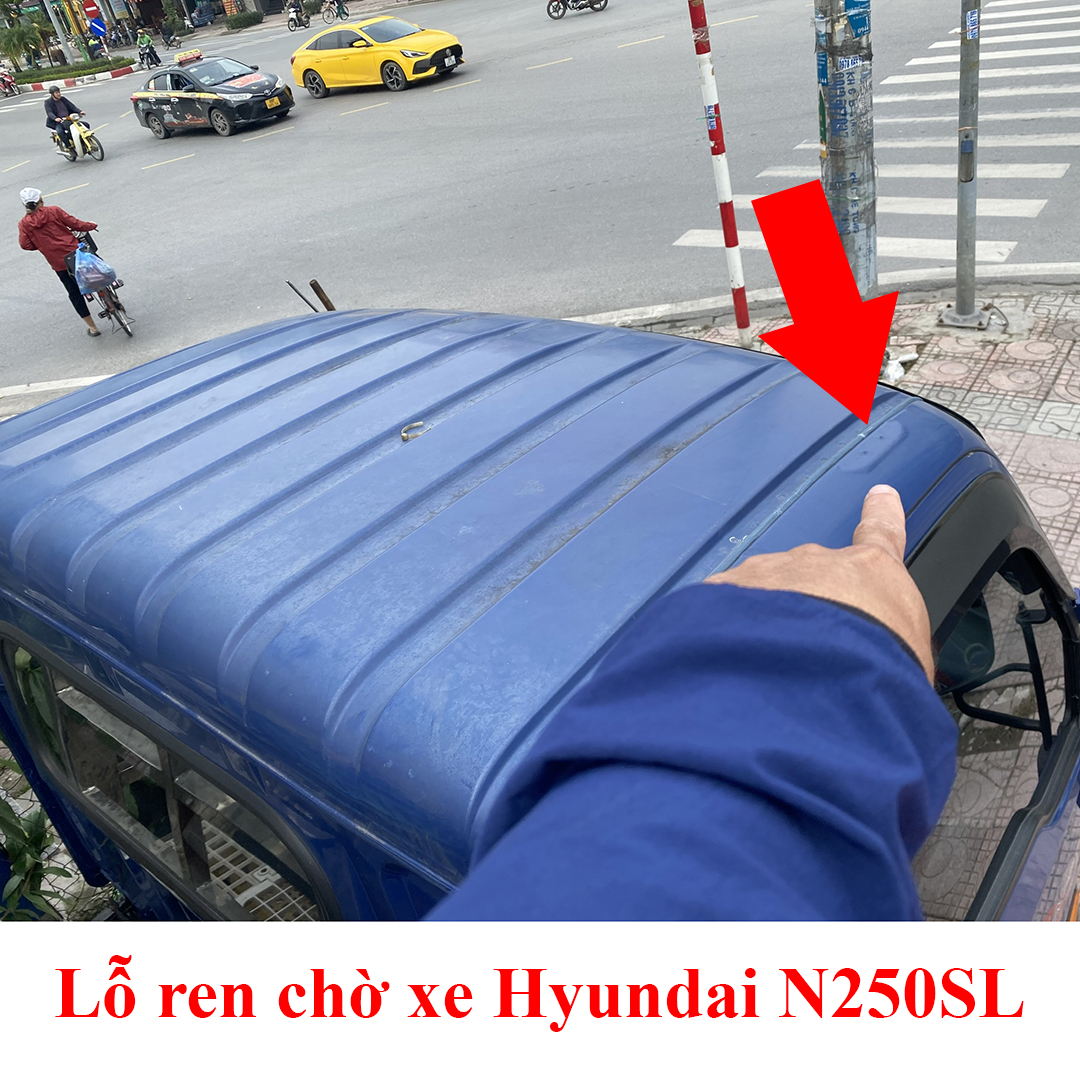 Đối với dòng xe Hyundai, thì trên nóc cabin đã có sẵn lỗ ren chờ, do vậy, chúng ta chỉ cần 8 con bulong ren 12 có long đen là có thể bắt cố định mui lướt gió lên nóc cabin mà không cần khoan đụng như các dòng xe khác. Với các dòng xe khác thì chúng ta có thể thực hiện theo các bước.